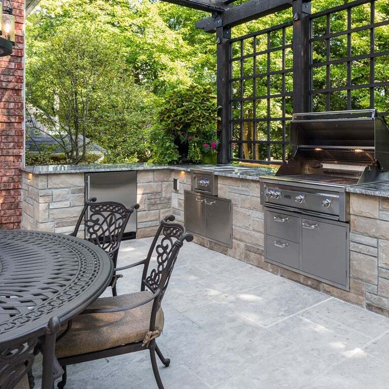 Custom outdoor kitchen design and installation for entertaining and cooking al fresco. We build complete setups with built-in grills, countertops, storage cabinets, bars, and pizza ovens. Create the perfect backyard cooking space for gatherings year-round.